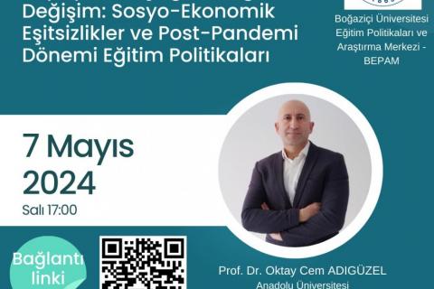 7 Mayıs Salı 2024 tarihinde online olarak gerçekleştirilen "Yapay Zekâ Çağında Eğitimde Değişim: Sosyo-Ekonomik Eşitsizlikler ve...